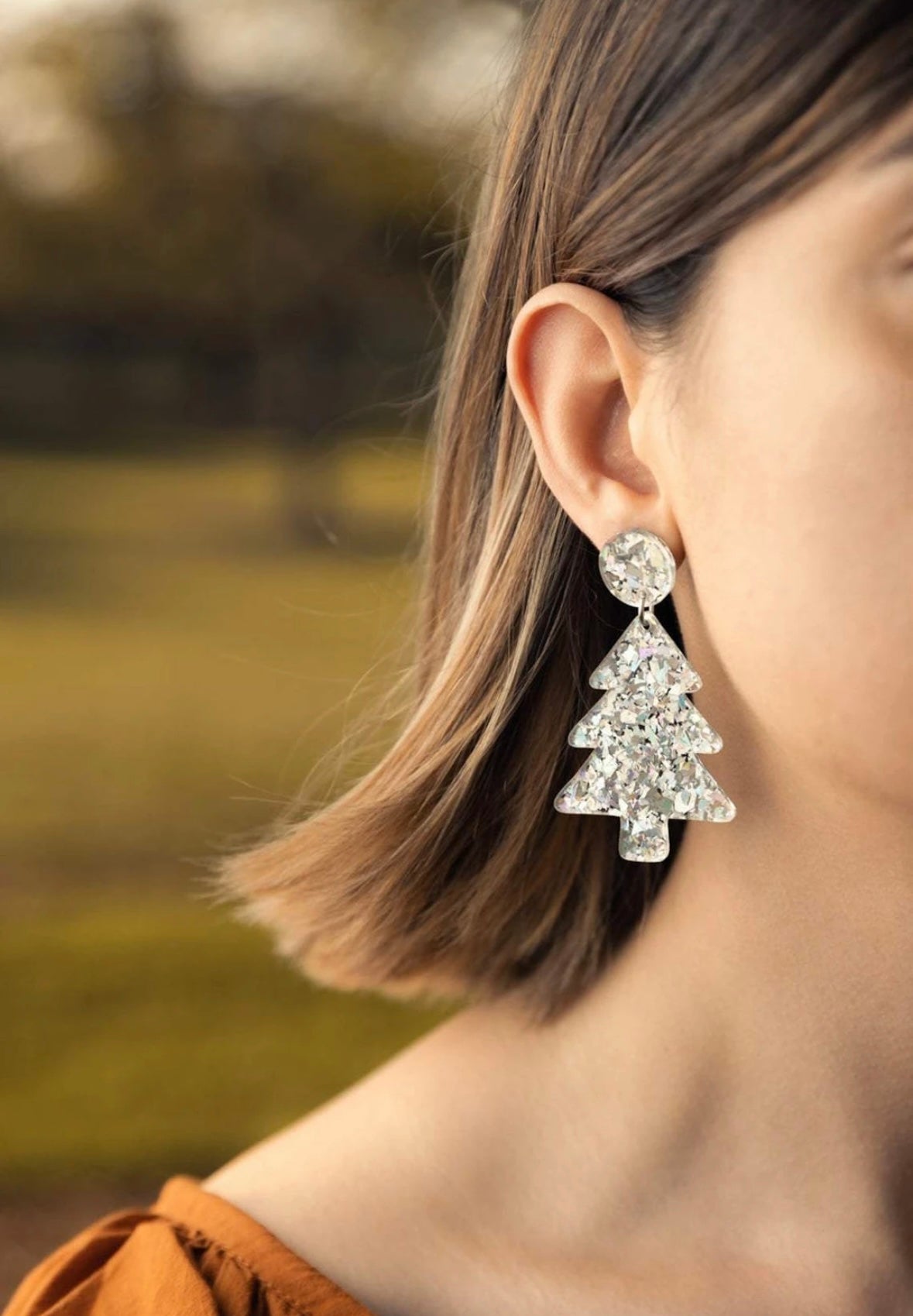 Acrylic Christmas Tree Dangles: Green & Iridescent Silver