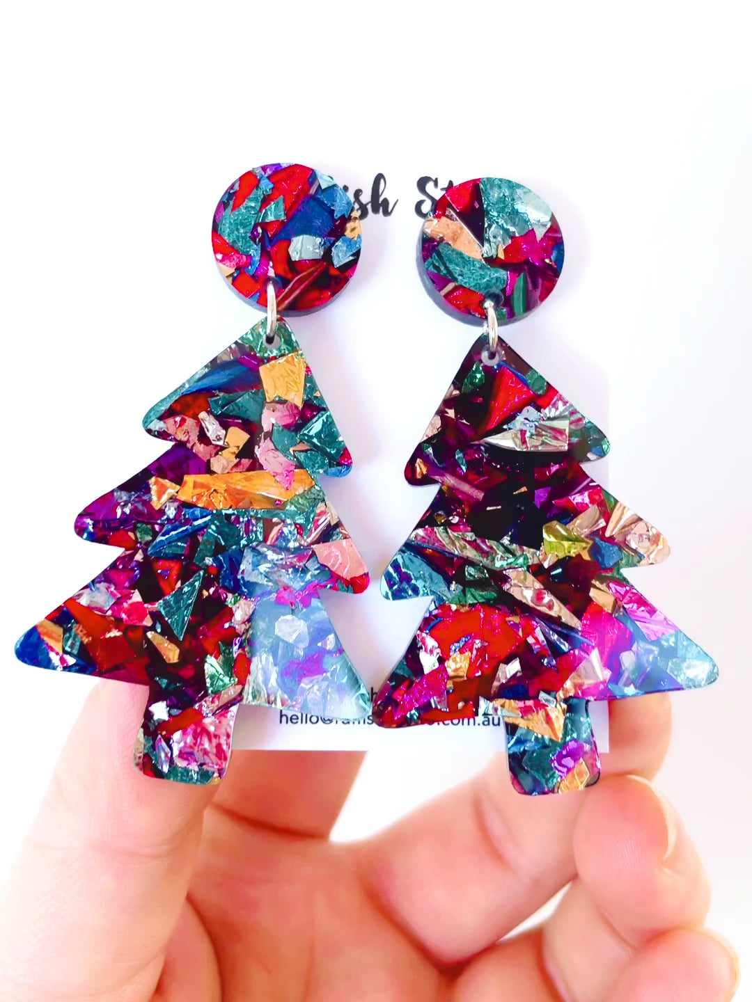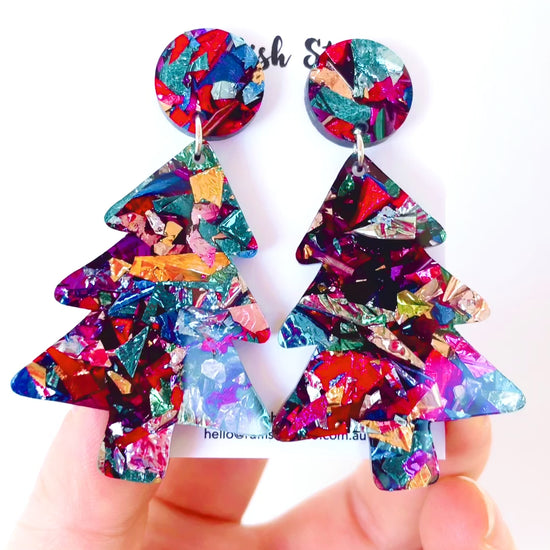 Acrylic Christmas Tree Dangles: Rainbow Foil