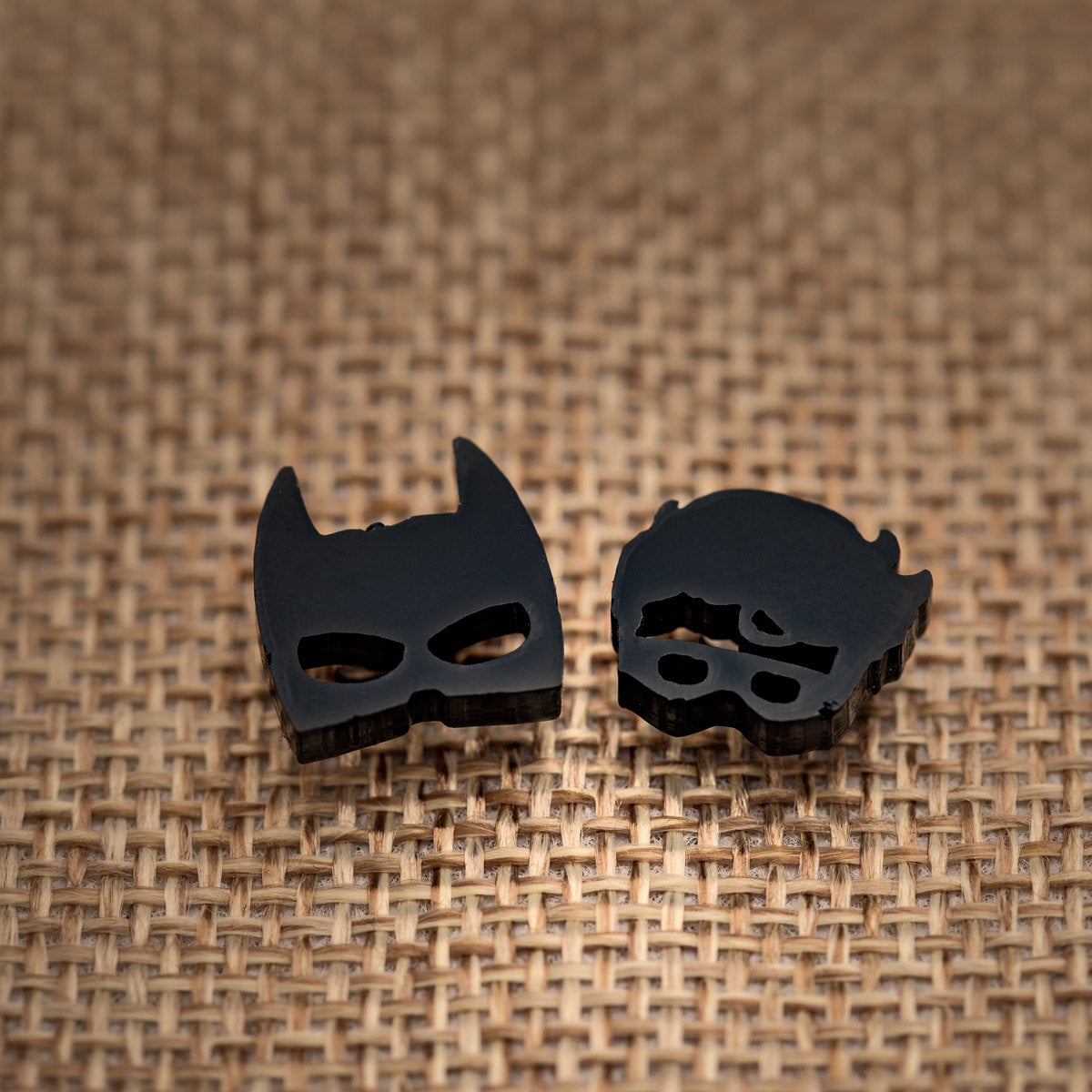 Embrace your inner superhero with these batman inspired acrylic stud earrings.